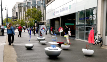 les artistes de ON-OFF Studio proposent une exposition d’œuvres à l’intérieur de la galerie et à l’extérieur sur la terrasse, ainsi qu’une déambulation qui ira jusqu’au Centre Paris’Anim rue de la Jonquière avec les Culbutos créés cet été avec les jeunes et les seniors du Centre Social et Culturel La Serre Pouchet.